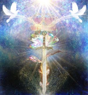Recently, Merida’s masculine hierogamic counterpart was revealed to be a Dark Matter Elohei Michael-Merlin, and that they shared twinned Pegasus Elohei Aquatic Mer consciousness bodies that are connected to 11D Aveyon, which were heavily damaged during the Lyran Wars. Thus, they both have been under a covert specific retrieval mission for the rehabilitation of their dark matter rainbow sun-stars, and this particular mission was being directed in stealth by the Cosmic Elohei Parents. For Merida’s return to this world as the 11D Staff of the King Arthur Grail lines, her aquatic Mer dragon body and organic rod and staff in the form of dual tridents needed to be fully merged in sacred union with her beloved husband, an Amethyst Order Pegasus Father Elohei, Michael-Merlin.[2]