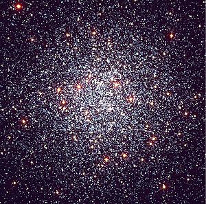 Messier 55 (also known as M55 or NGC 6809 or "The Summer Rose Star") is a globular cluster in the constellation Sagittarius. It was discovered by Nicolas Louis de Lacaille in June 16, 1752 while observing from South Africa. M55 is at a distance of about 17,600 light-years away from Earth. It has a mass of about 269,000 times that of the Sun. As with other Milky Way globular clusters, it has a low abundance of elements other than hydrogen and helium compared to the Sun—what astronomers term the metallicity of the cluster. Only about 55 variable stars have been discovered in the central part of M55. [1]