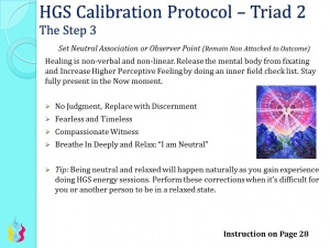 Tip: Being neutral and relaxed will happen naturally as you gain experience doing HGS energy sessions. Perform these corrections when it’s difficult for you or another person to be in a relaxed state.