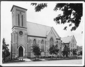 Omaha's St. Mary Magdalene Church before the grading project began. The top photo shows the west side of the church about 1908.
